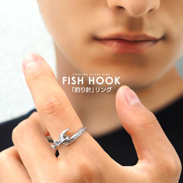 送料無料 リング 指輪 メンズ フィッシュリング 釣り針 金属アレルギー対応 リング r0871