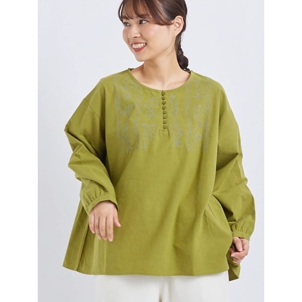 フロントに施された繊細な花柄刺しゅうがさりげないアクセントになります。