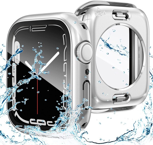 AMAPC for Apple Watch ケース 360度全面防水 バンド 水泳・スポーツ専用 ガラスフィルム 一体型 apple watch 用 カバー 360フルボディ防水 アップルウォッチ ケース Apple Watch Series 9/8/7 45mm対応 シル