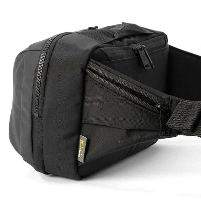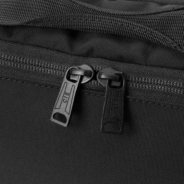 | 本体前面素材はINVISTA社に依頼し開発したオリジナルマテリアルCORDURA® POLYCARBONATEを使用しています。CORDURA® POLYCARBONATEはベース生地には摩擦、引裂きに強い耐久性に優れたCORDURA®305Dポリエステルオックスの表面に通常のPUコーティングに比べ耐摩擦性、耐摩耗性、耐光性、加水分解による劣化スピードが遅い耐久性に優れたポリカーボネイト加工を施した防水性、撥水性に優れた素材を使用しております。付属素材には裏面にPVC加工された420Dナイロンを採用しており、生地自体の防水性を高めております。 前面にはZIPポケットを1ヶ所、またサイドにはBluetoothイヤホンなど収納可能な立体ZIPポケットを配しております。背面にもZIPポケット、内装には前面にメッシュZIPポケット、背面にはタブレット収納ポケットがあり、機能的にも充実した商品となっております。 カラーはCIE別注色の炭がかった独特のBLACKと、ポーランド軍で使用されるテントなどの色に触発されたGRAY、伝統的な英国海軍のロイヤルネイビーをモチーフにしたNAVYの3色展開となっております。また、CORDURA別注織ネームはCIEオリジナルのオリーブカラー、CIEオリジナルネームは昔ながらのシャトル織機で織られたバックサテンのネームとなっております。ZIPにはCIEオリジナル亜鉛ダイキャストのYKK製引手を使用しております。 |