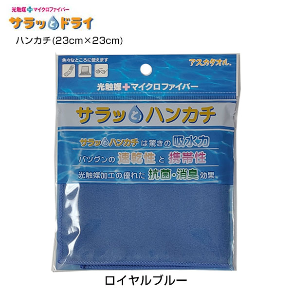 サラッとドライ ハンカチ 23cm×23cm ロイヤルブルー - アスカ ※ネコポス対応商品