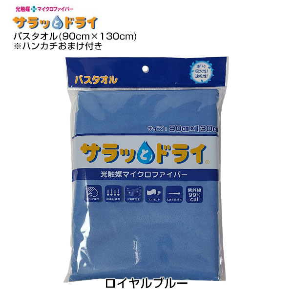 「サラッとハンカチ 23cm×23cm ロイヤルブルー」は、優れた吸水・速乾性があり、薄くてかさばらないので、ポケットに入れても邪魔になりません。携帯、タブレットの画面を拭いても、優れたクリーニング効果があります。汗を押さえるだけで吸い取るので、お肌にやさしくお化粧も崩れにくいハンカチです。