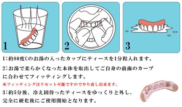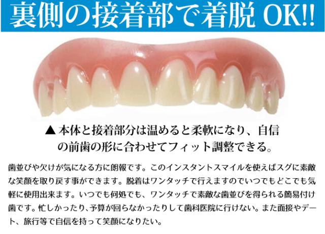 「インスタントスマイル スモール 女性用」は、欠け歯、黄ばみ歯、すきっ歯等に、脱着簡単な付け歯です。