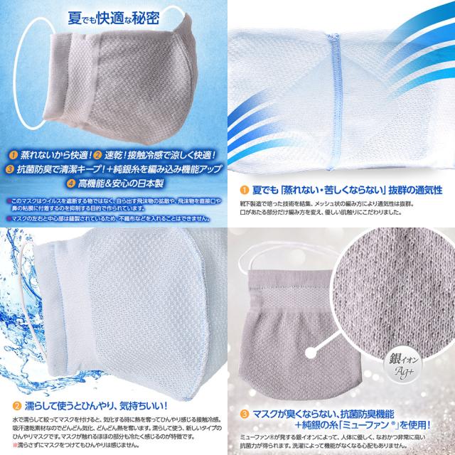 ひんやりマスク メッシュ 銀イオン 1枚 - ハイブリックス [接触冷感、殺菌効果、抗菌防臭、吸汗速乾、日本製] [訳ありアウトレットセール] [涼しいマスク] ※メール便対応商品