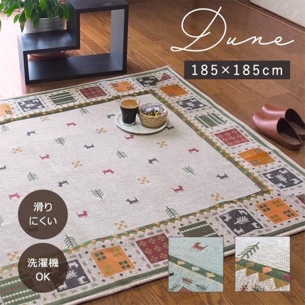 ラグ ラグマット 絨毯 デューン 185×185cm 正方形 洗える 洗濯機 滑りにくい ノンスリップ加工 電気カーペット対応 カーペット 北欧 ベージュ グリーン