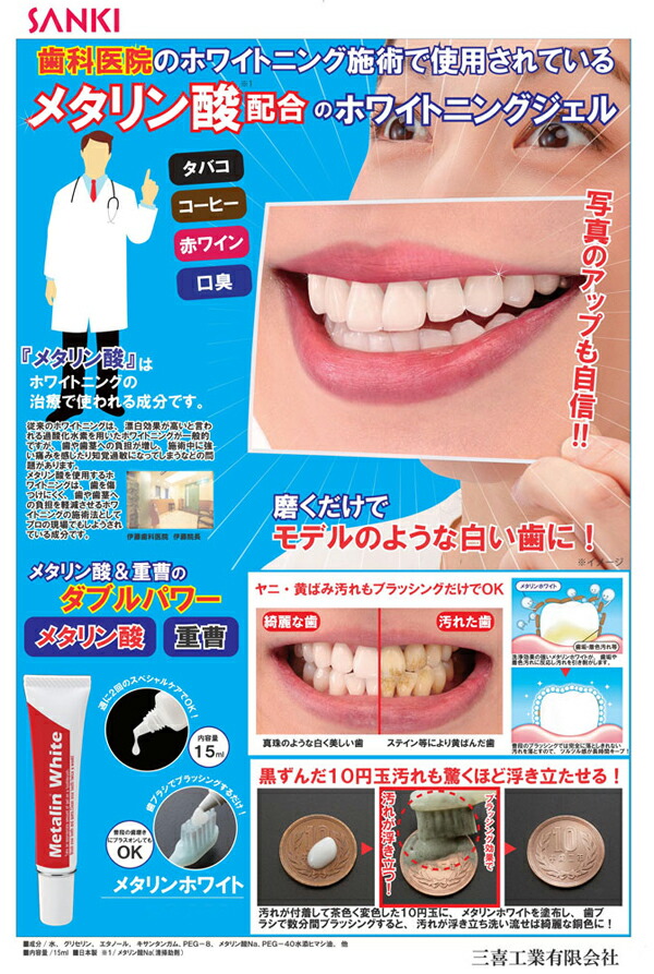 【メール便送料無料】三喜工業 メタリンホワイト 歯みがきジェル 15mL ホワイトニング トゥースケア 汚れ落とし
