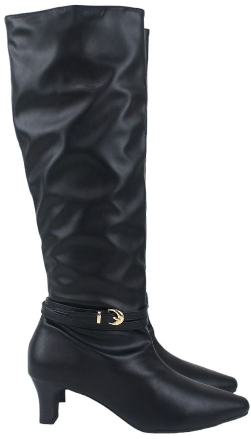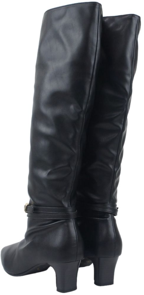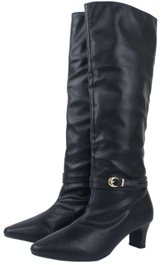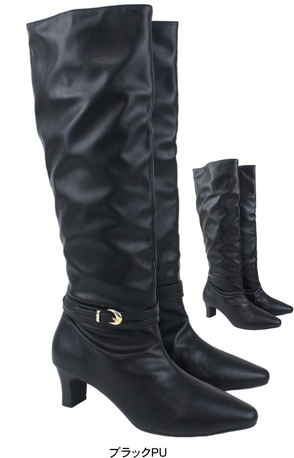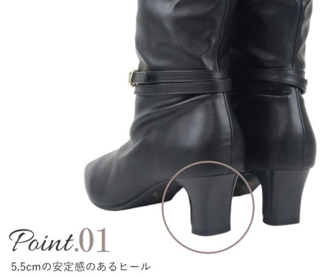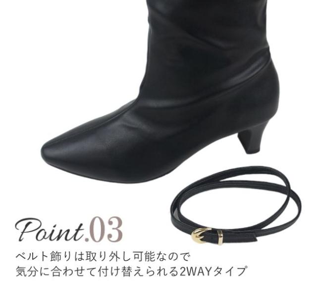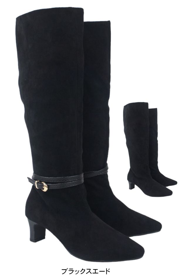 ロングブーツ レディース 5.5センチ ヒール ベルト飾り 2WAY アレンジ 美脚 伸びる ストレッチ素材 ミドルブーツ スエード スタックヒール ミドルヒール 黒 ブラック 履きやすい 30代 40代 50代 sm6700