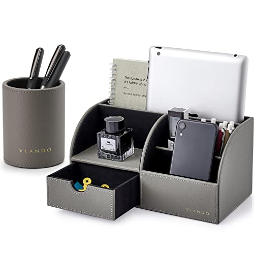 ◆商品名:Vlando デスクオーガナイザー 卓上収納 ペン立て リモコンラック 小物入れ ペンホルダー付き (グレー)<br>