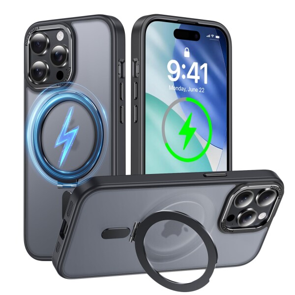 【MagSafe対応】超世代的な隠しスタンドと強力なマグネットリングの強力な結合により、高い吸着力でガッチリと固定しながら充電ができます。安定性を持ち、充電器を近づけると高速ワイヤレス充電が実現です。また、磁気を利用しているため充電器以外にもスタンドやウォレットなどのアクセサリーに固定可能。
