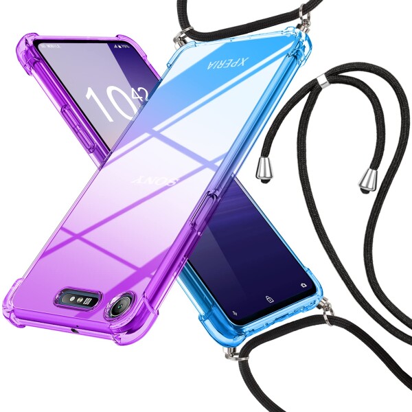 YDIHIHO 対応 Xperia XZ1 用のケース クリア SO-01K SOV36 用 肩掛け 斜めかけカバー 薄型 グラデーション色 ショルダー tpu 耐衝撃 透明 長さ調整可能 縄掛けケース おしゃれ 黄変防止防塵一体型