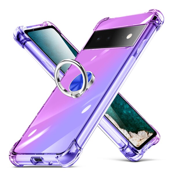 MNYWDSQ 対応 Google pixel6 用の ケース リング クリア 透明 スリム 薄型 TPU pixel6 カバー 耐衝撃 クリア 透明 スリム 薄型 グラデーション スタンド機能 車載ホルダー TPU 黄変防止 指紋防止 防