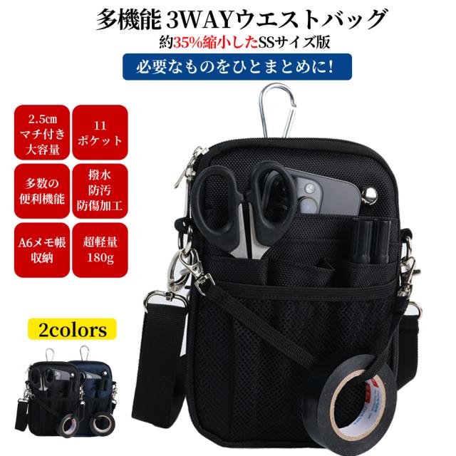 多機能 ウエストポーチ ナースポーチ ウエストバッグ SSサイズ ダブルジッパー 仕事用 11ポケット マチ付き 3wayショルダー 腰袋 文房具 小物入れ 大容量 作業用 事務 看護 介護 腰袋 工具入れ ベルト付き 撥水 防傷加工