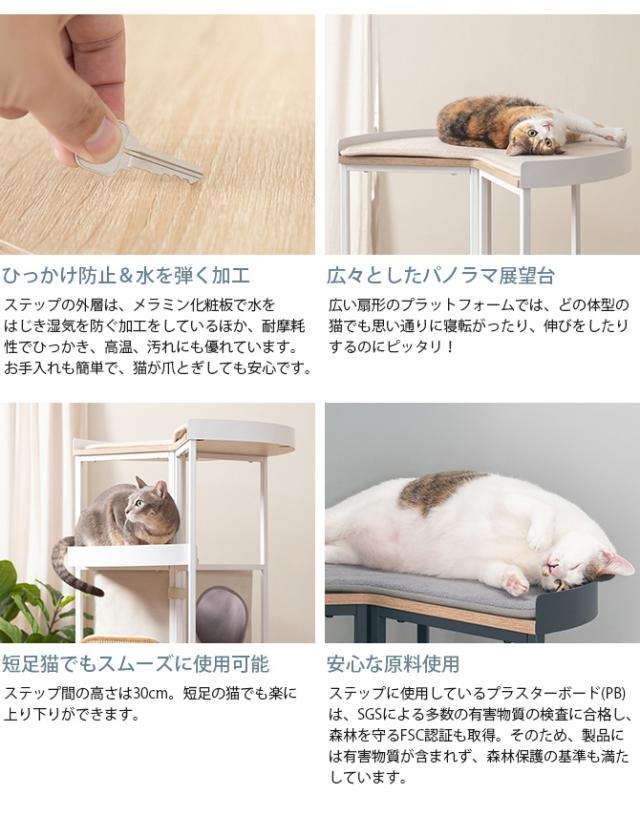 螺旋階段状のデザインは、猫がスムーズに上れるだけでなく、キャットタワーのバランスを保ってくれます。