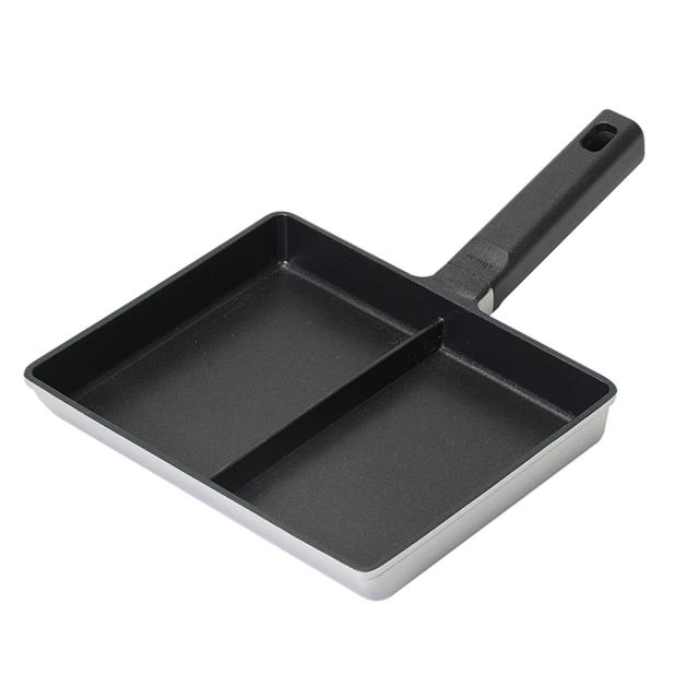 朝食やお弁当のおかず作りに大活躍の、仕切り付きのフライパンです。2品を同時に調理できるので、忙しい朝の時間を効率よく使えます。軽量で扱いやすいアルミ製で、熱伝導率が良いので、1つ持っておくと便利に使えます。