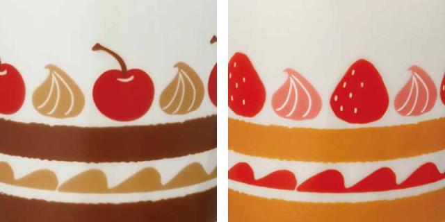 スイーツの香りが漂ってきそうなケーキのイラストが乙女心をくすぐるデザインです。飲み物を入れるのはもちろん、ディスプレイとしても楽しめます。