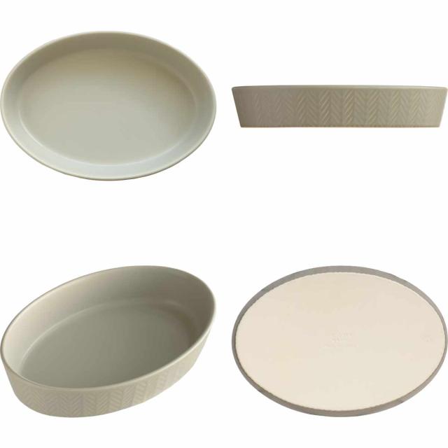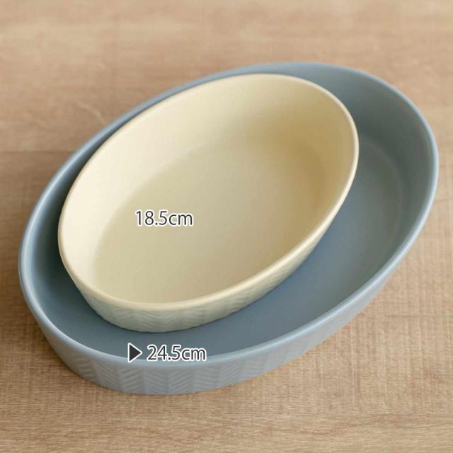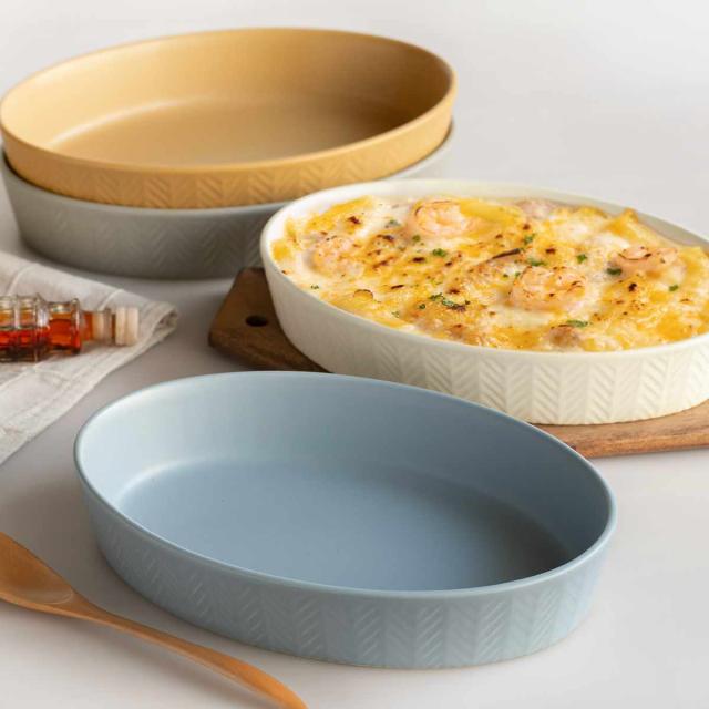 ヘリンボーン柄が美しいくすみカラーのグラタン皿