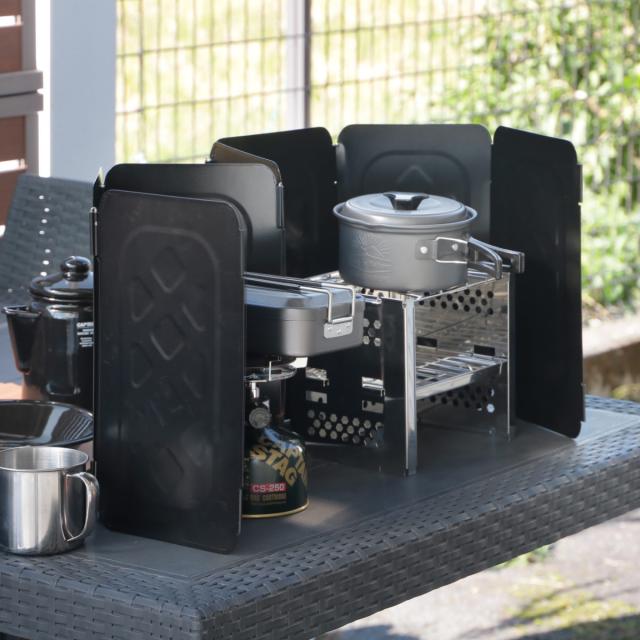 コンパクトにたためるレンジガードは持ち運びも簡単なので、BBQなどアウトドアでも活躍します。油はねを防ぎながら、風除けとしても使うことができて便利です。