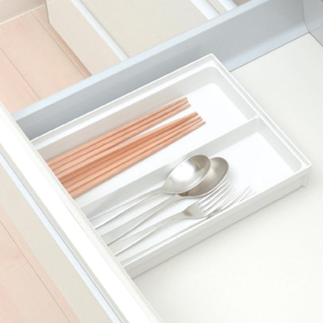 引き出しの中でサイズ別に分けて、様々なカトラリーの定位置を作り美しく収納できます。どこに何があるか引き出しを開けたときに分かりやすく、出したカトラリーをどこに戻すかも一目瞭然です。