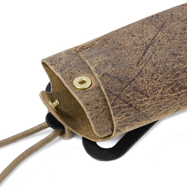 | スマートフォンとポーチを一緒に持ち歩ける、コンパクトなデザインのモバイルネックポーチです。 ポーチはカード類が収納できるサイズ感のスリムなシルエット。ポーチの背面には、ゴムバンドを設置し、強度の高いゴムが採用されているためスマートフォンをしっかり固定してくれます。 キャッシュレス化が進む昨今、お洒落かつ身軽に外出したい方に嬉しいアイテムです。 本体にアフリカ大陸に分布する「クーズー」という動物の革を使用。クーズーは2回捻れた角を持ち、体色は赤褐色、もしくは灰がかった青で、胴体には白い横縞が数本入る動物。胴体に入る白い横縞がそれぞれ異なり独特の表情となっています。角は楽器の材料などに使われ、南アフリカのサッカーファンが応援に使う「ブブゼラ」は、クーズーの角笛が起源とも言われています。 日本では1頭も飼育されていないため非常にめずらしく、1点ごとに異なる縞模様と独特のさわり心地、風合いが魅力です。革種としてはアンテロープとなります。アンテロープとは綱偶蹄(ぐうてい)目ウシ科に属しますが、日本特産のカモシカもアンテロープに含まれます。そのため、牛革の「強さ」とカモシカの「しなやかさ」を併せ持っているのが特徴で、加えて銀面を擦り、WAX仕上げを行うことで独特な表情と質感を出しています。 クーズーレザーはイギリス「Charles F Stead」社製です。同社はクラークスのデザートブーツに使われるスエードを供給していることでも有名な1904年創業の名タンナーです。 天然素材を生かした製法の為、生前傷による表面のキズや 血筋によって、1つ1つ色ムラやシワの個体差が多くございます。 独特の質感と、唯一無二の革の表情をお楽しみ頂けることから 高く評価されている革の一つです。 |