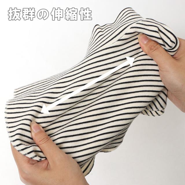 トップスなどのチクチクから肌を守る、優しい肌触りの綿100%素材