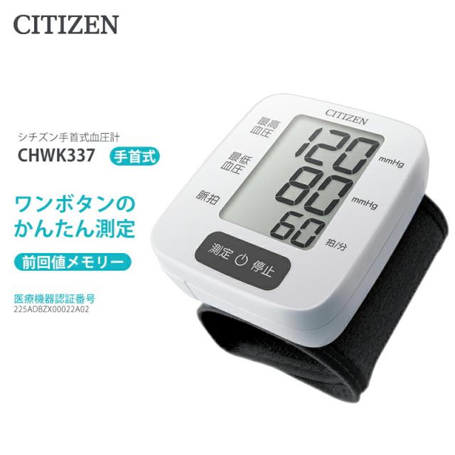 シチズン 手首式血圧計 CHWK337 簡単操作 大画面 前回値メモリ 血圧測定器 電池式 手首式 健康 血圧測定 大画面液晶 血圧測定機 操作簡単 ワンボタン 血圧測定器 CITIZEN chwk337