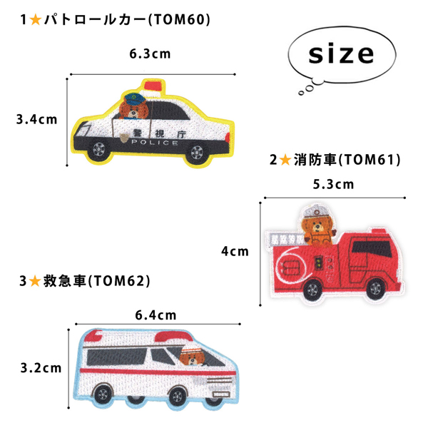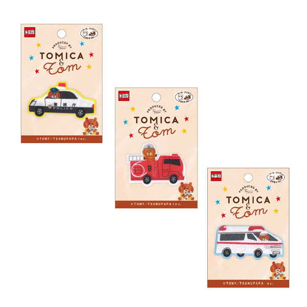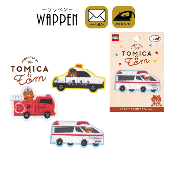 トミカとトム ワッペン 刺繍 アイロン接着 シール 両用タイプ パトロールカー パトカー 消防車 救急車 働く車 入園 入学 わっぺん アップリケ あっぷりけ つむぱぱ コラボ