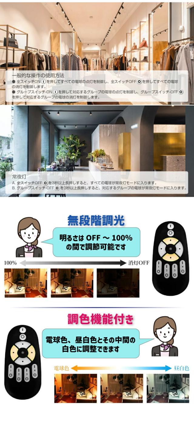 1.【調光調色機能付き】無段階調光調色可能で、温かみのある電球色、清々しい昼光色、その中間の白色に調整でき、お好みに合わせて思いのままに灯りをコントロールできます。常夜灯モードにも対応しています。美しいだけでなく省電力も実現。調光で80%の節電。 2.4GHz無線式リモコンで複数のライトをグループ分けし、グループ内に登録したライトの明るさ・色を調節できます。離れたところからでもリモコンで簡単にON/OFF、明るさ調整できます。