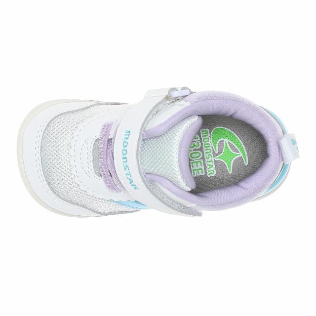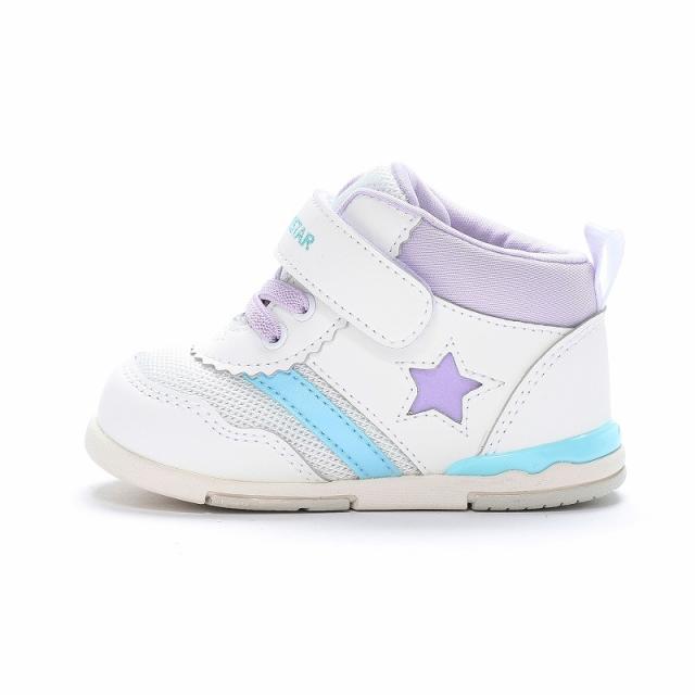 【商品特徴】「こどもの足にいいことぜんぶ」の想いから生まれた機能シューズ「ムーンスター キャロット」HI!!シリーズのベビーシューズです。脱ぎ履きしやすいゴム紐×バンドタイプです。通園やお出かけなど、シーンを選ばずに履いていただけるクラシックなデザインです。好評につき、新色のグリーン、アイボリー、ブラック/ホワイトをご用意しました。子どもの足の成長をサポートする「4つの機能(つま先ゆったり/カウンターボックス/フレックスジョイント/機能性カップインソール)」に加え、アーチを支え足のねじれを防ぐハードシャンクも搭載しており、足の健やかな発育を促します。重さは13.0cmで片足約110gです。【つま先ゆったり】つま先にゆとりを持たせ、足の指を圧迫せずにのびのび動かせます。【機能性カップインソール】足裏になじみ、取り出して洗濯ができるので靴内を清潔に保てます。つま先部分に踏ん張りやすいように滑り止めの発泡プリントを施しています。また、中敷きの屈曲部を波型形状にすることで、靴の屈曲部がより曲がりやすいように設計されています。【カウンターボックス】子どもの柔らかくゆがみやすい足を箱型構造でしっかり支えます。