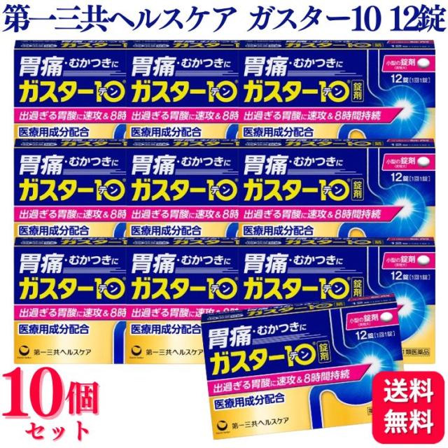 【第1類医薬品】【10個セット】 第一三共ヘルスケア ガスター10 12錠 胃痛 胸やけ ガスター 胃腸薬 胃薬 もたれ むかつき 胃酸 ファモチジン
