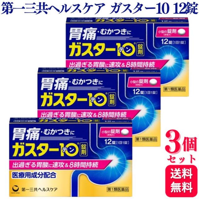 【第1類医薬品】【3個セット】 第一三共ヘルスケア ガスター10 12錠 胃痛 胸やけ ガスター 胃腸薬 胃薬 もたれ むかつき 胃酸 ファモチジン