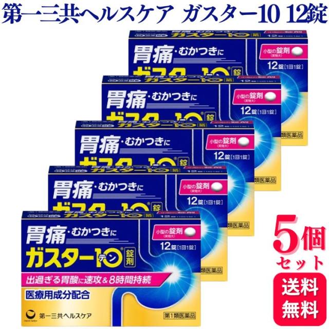 【第1類医薬品】【5個セット】 第一三共ヘルスケア ガスター10 12錠 胃痛 胸やけ ガスター 胃腸薬 胃薬 もたれ むかつき 胃酸 ファモチジン