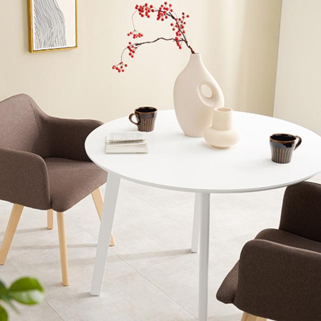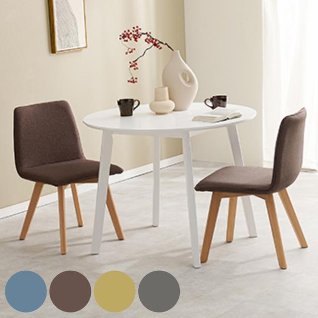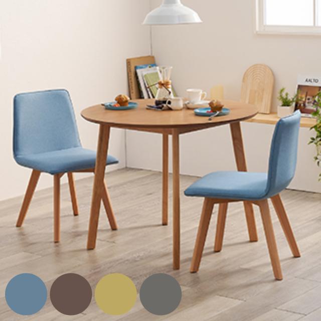 ファブリック×天然木が北欧を連想させる、どんなインテリアにも合わせやすいデザインのダイニングセットです。円形テーブルのなめらかな曲線が優しく、食卓を温かな空間に演出してくれます。
