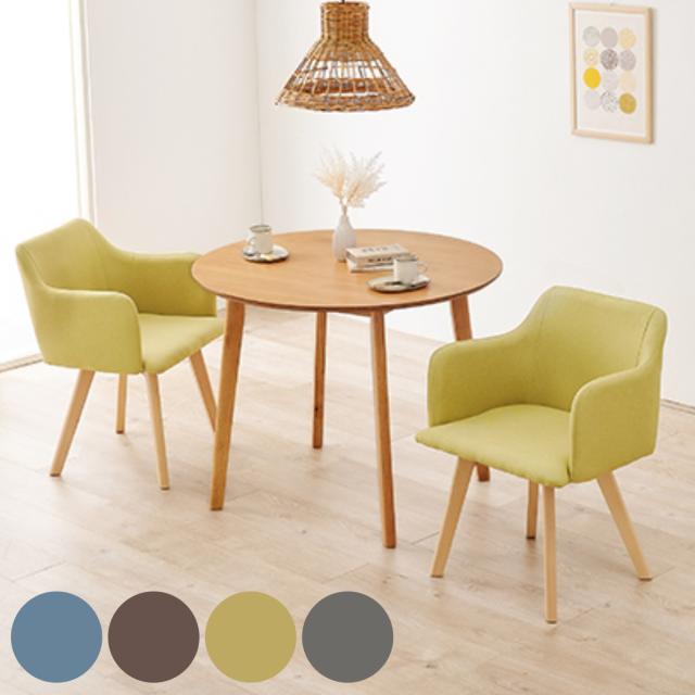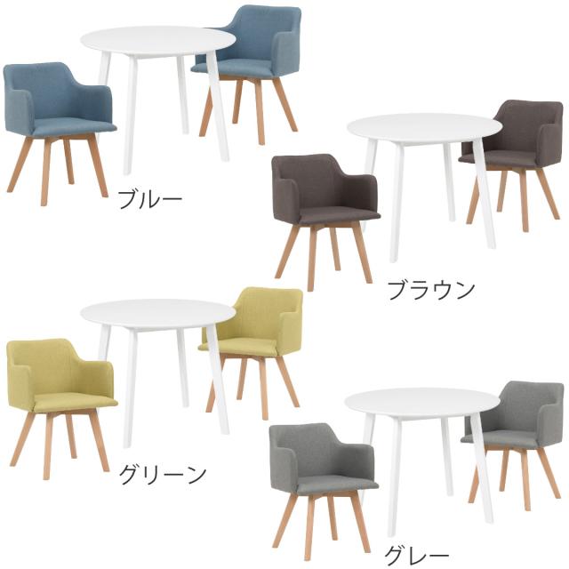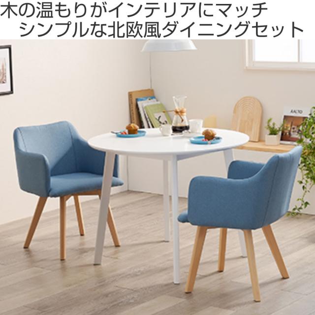 ダイニングセット 3点セット チェア肘付 円型テーブル ホワイト ( 90cm 白 ダイニングテーブルセット 2人 ダイニングテーブル チェア セット 木製 テーブル ダイニング 丸テーブル 天然木 ファブリック 椅子 イス 北欧 おしゃれ )