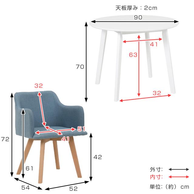 | サイズ | テーブル:約 幅90×奥行90×高さ70(cm) チェア:約 幅52×奥行54×高さ72(cm) 座面高:約42(cm) |