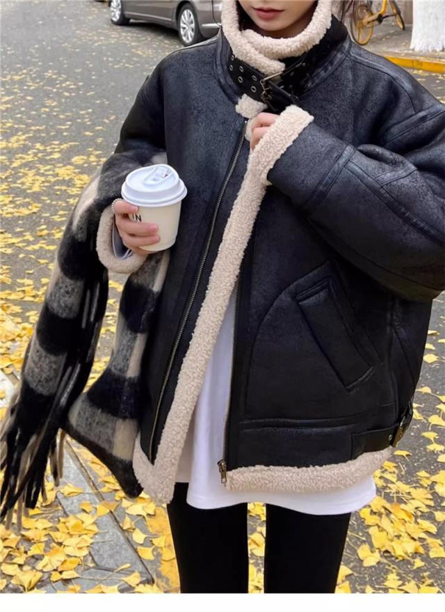 レザージャケット レディース ボアジャケット ライダースジャケット 革ジャン ブルゾン アウター 厚手 防風 防寒 暖か 保温 ゆ