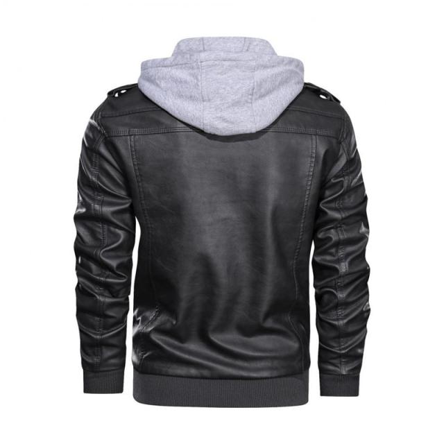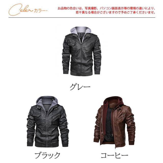 レザージャケット メンズ 革ジャン ライダースジャケット フード付き 秋冬 アウター パーカー フェイクレイヤード ビジネス 開襟