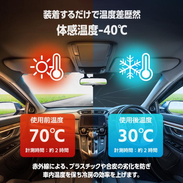UV紫外線を99%以上カットし、日光を反射して車内温度の上昇を防ぎます。