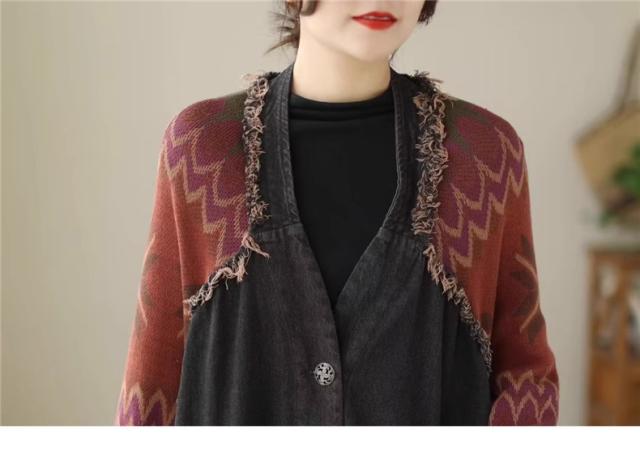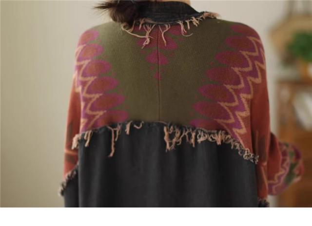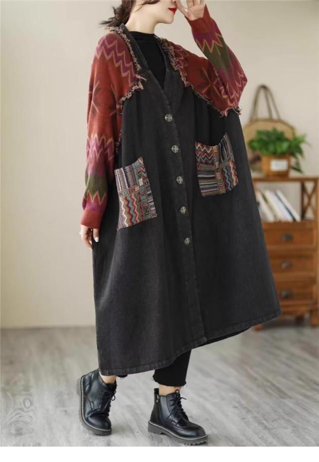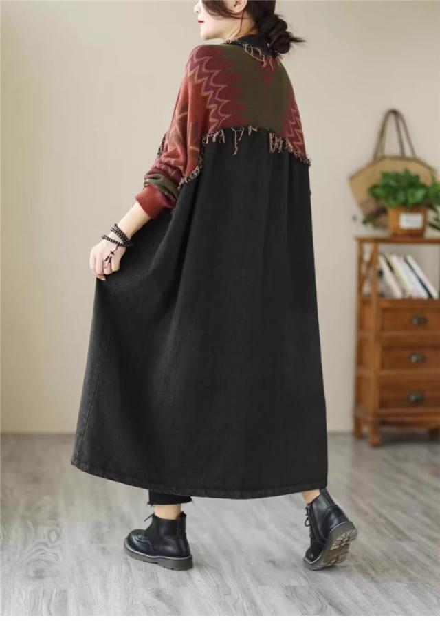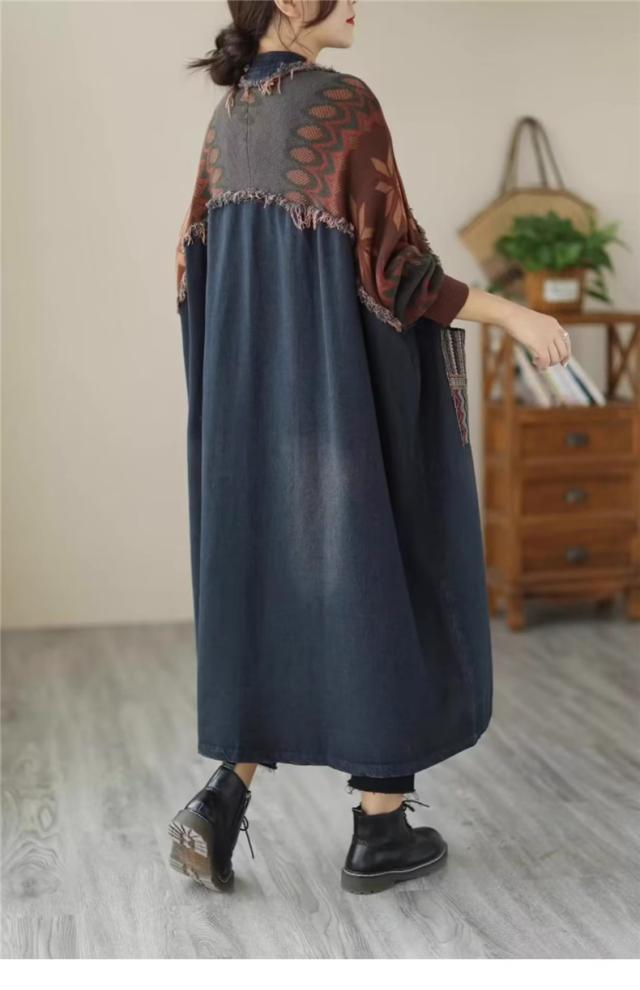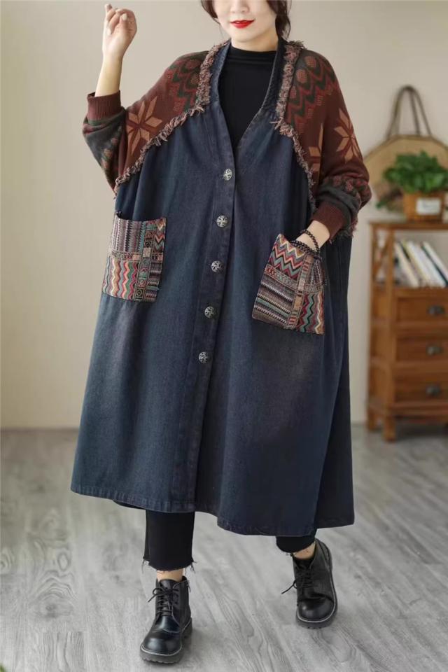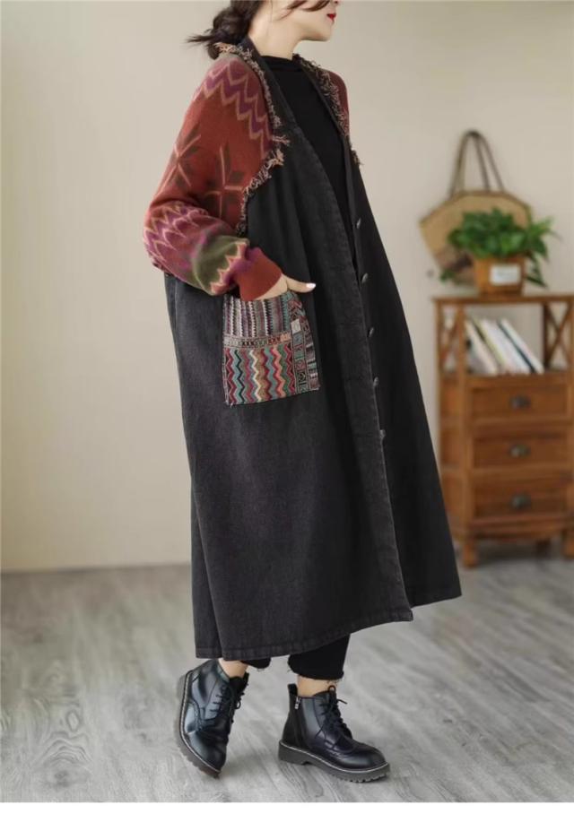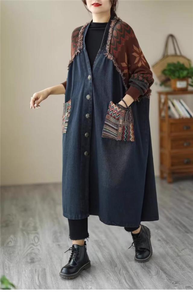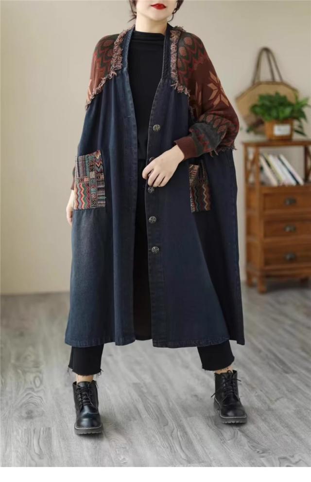 デニムコート 異素材 切り替え レディース 長袖 アウター ロング丈 デニムジャケット 羽織り ゆったりとしたシルエット 大人カジュアルな風合いが魅力