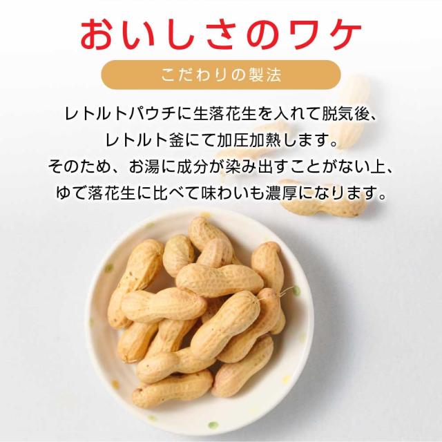 | ご注意事項 | ・落花生がのどに詰まるおそれがありますので、4歳未満の乳幼児には食べさせないでください。 ・開封後は、その日のうちにお召し上がりください。 ・温度の変化により袋の内側に水滴がついたり、まれに落花生の殻の成分が袋の内側に白くついたり殻表面がゼリー状になることがありますが、品質には影響ありません。 |