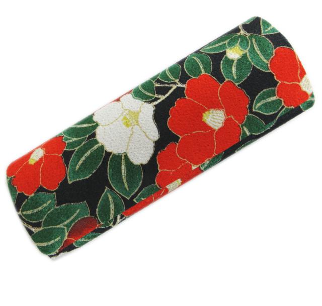 メガネ ケース 入れ 眼鏡 めがね 和柄 ワンタッチ 黒色地赤白椿花 女性用 レディース