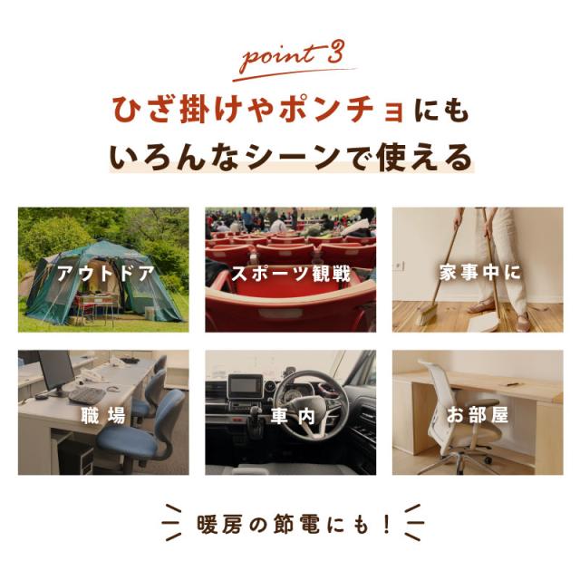 【ひざ掛けやポンチョにも】スカートとしてだけではなくひざ掛けやポンチョとしても使用できるので、場面によって様々な使い方ができます。