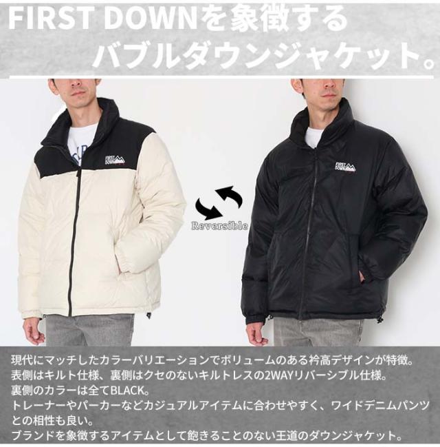 ダウンジャケット メンズ FIRST DOWN ファーストダウン アウター リバーシブル ホワイト ブラック バブル ダウン ジャケット マイクロフト BUBBLE DOWN JKT MICROFT F542001