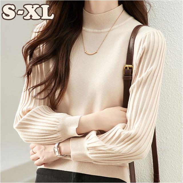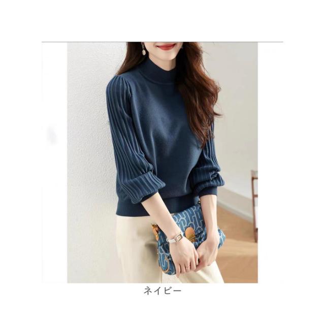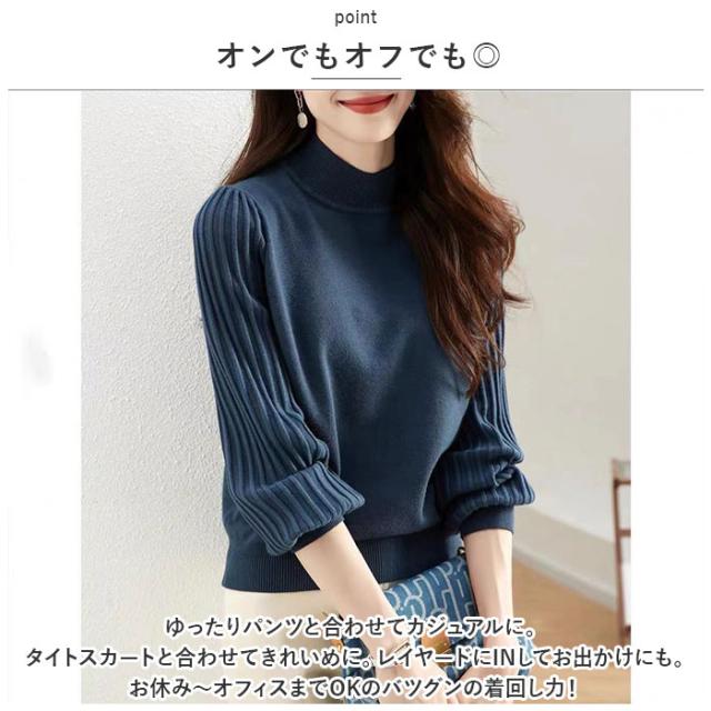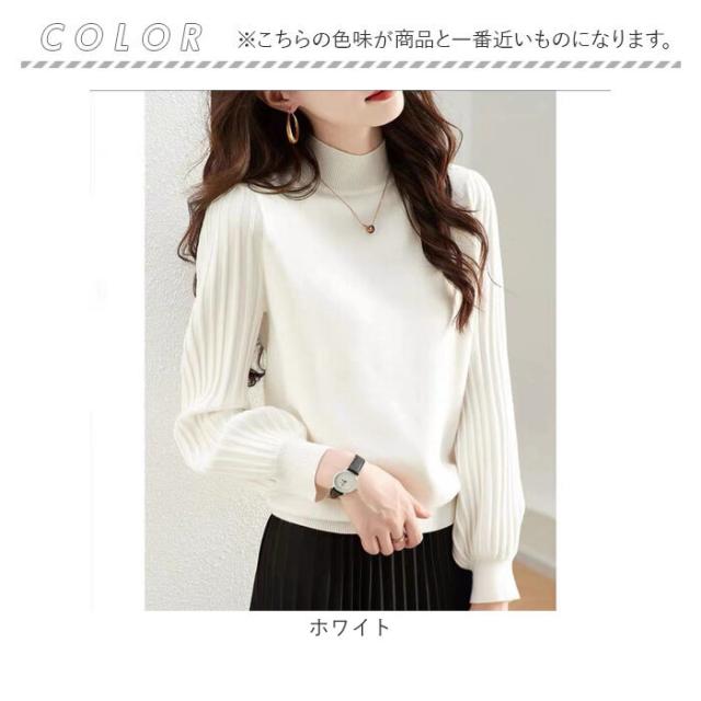 ハイネック ニット 秋冬 レディース 通販 セーター ハーフタートルネック 薄手 秋 冬 薄い 長袖 プリーツ 袖 パフスリーブ ボリュームスリーブ 袖コンシャス おしゃれ シンプル 大人