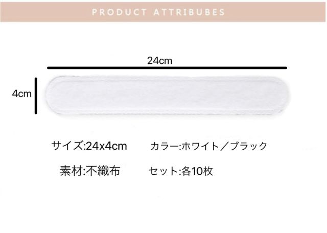 自己粘着、?がせ易い。各ストリップの裏側に接着剤が付いており、スウェットバンドの内側に直接貼り付けることができます。