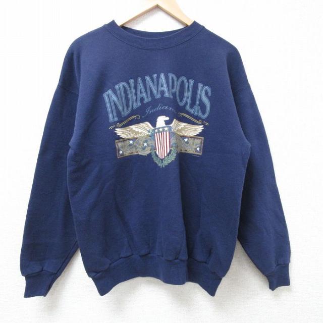 【商品名】 L★古着 ヘインズ Hanes 長袖 スウェット メンズ VAMUN クルーネック 濃紺
