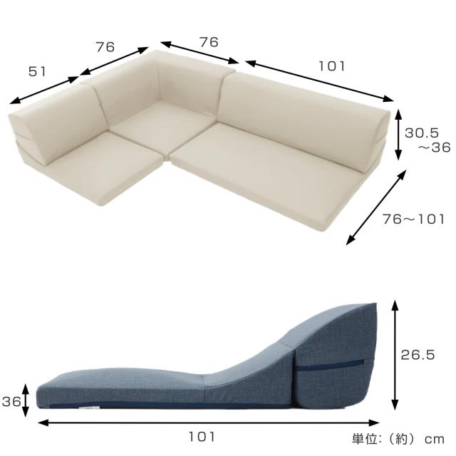 | サイズ | 1人掛け:約 幅51×奥行76〜101×高さ30.5〜36(cm) 2人掛け:約 幅101×奥行76〜101×高さ30.5〜36(cm) コーナーソファ:約 幅76×奥行76×高さ36(cm) |