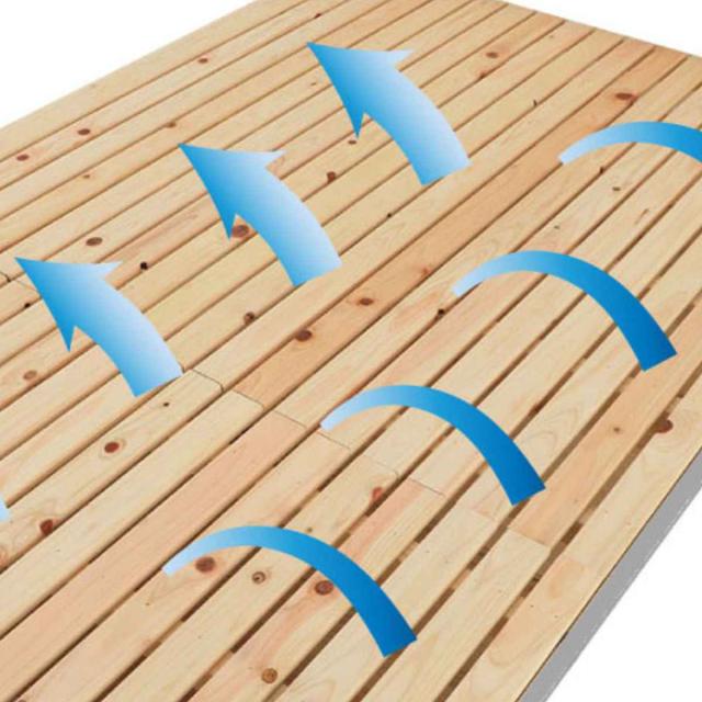 床面に、通常よりも細いすのこを採用することで、体圧を点で支え、お布団を敷いて使用した場合の寝心地をアップしました。軋みを抑える上、通常すのこの2倍の通気性があるので更に快適にお使いいただけます。
