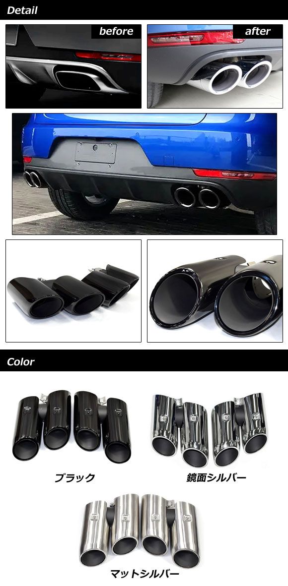 マフラーカッター ポルシェ マカン J1 2018年12月〜 鏡面シルバー ステンレス製 入数:1セット(2個) AP-XT2398-KSI