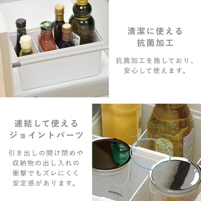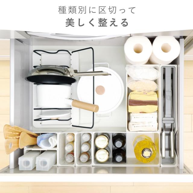 組み合わせることで、引き出しのサイズや目的に合わせて自分好みにカスタマイズできます。キッチンツールや調味料、食器など用途別に様々なサイズ、形状をご用意しています。