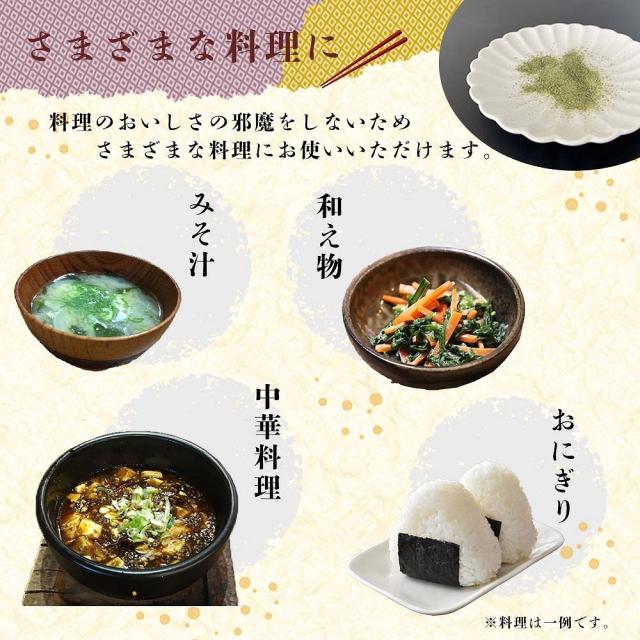 味噌汁、あらゆるスープやカレー、ハンバーグ、チャーハン、丼、麺類などに混ぜて使えます。